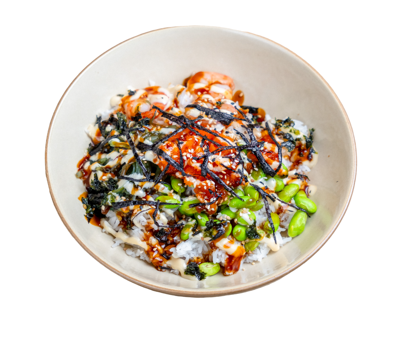 Reis, Garnelen Edamame, Seetang, Gemüse
