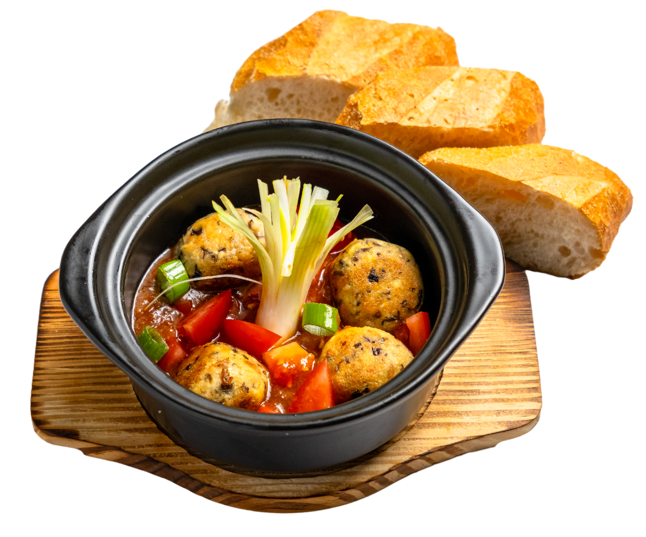 Baguette mit vietnamesischen Hackbällchen – Tomatensoße
